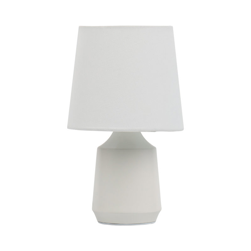 1. Die Basis der einfachen Tischlampe Metall nimmt ein weißes zylindrisches Design an. Das Material ist robust und langlebig und stellt die Stabilität und die Lebensdauer der Tischlampe sicher. Der beige Lampenschirm besteht aus weichem und langlebigem Material, das nicht nur gute Beleuchtungseffekte liefert, sondern auch die komfortable Erfahrung des Benutzers gewährleistet.